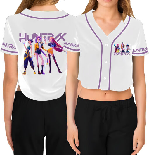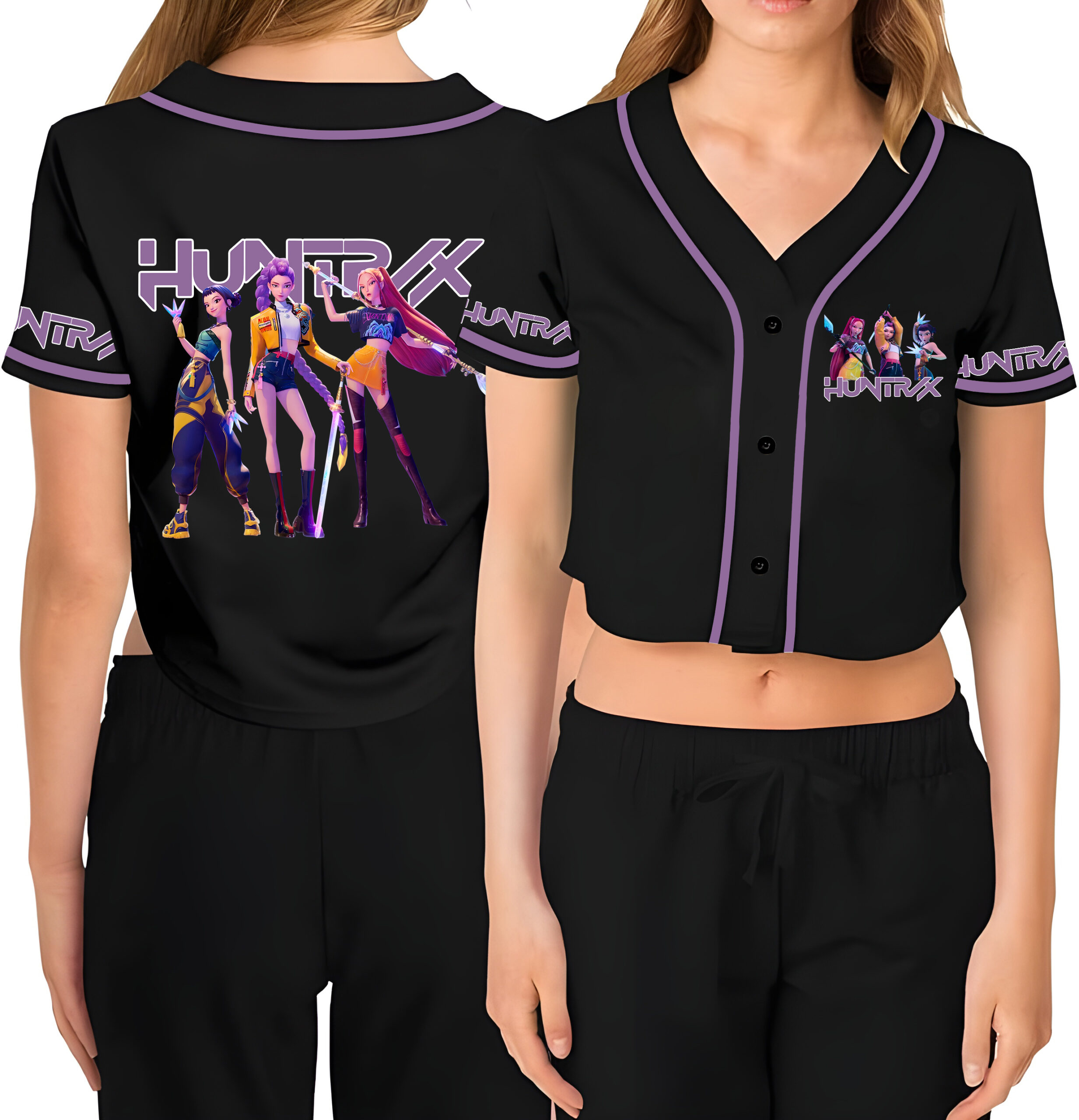 Huntrix Girls Kpop Demon Hunters Croptop Baseball Jersey, Kpop Demon Hunters Merch